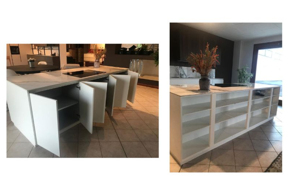 Questa cucina si integra perfettamente negli spazi open space, dove estetica e funzionalità si fondono armoniosamente. Approfitta dell'offerta speciale per rinnovo expo e porta a casa un pezzo unico che valorizzerà ogni momento passato in cucina.