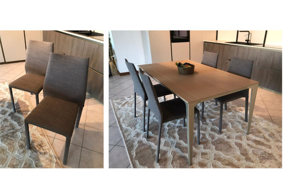 Questa sedia è disponibile in cuoio o tessuto e in due varianti dimensionali. Le oltre 100 proposte di rivestimento permettono di scegliere quello più adatto a ogni contesto di zona living.