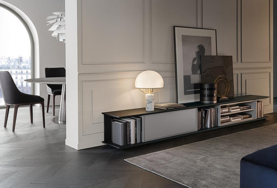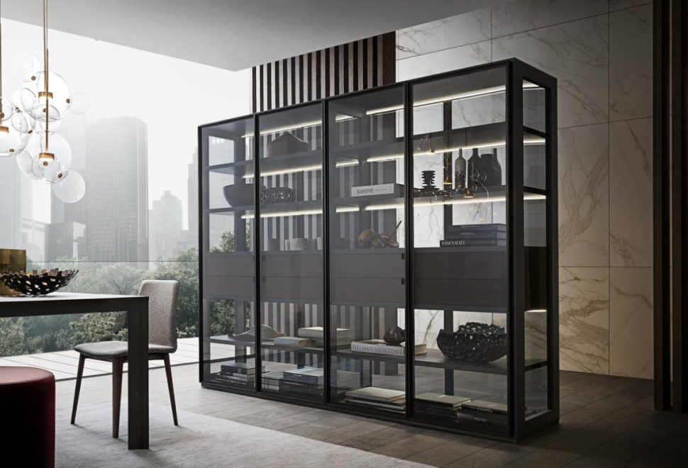 I sistemi Flexus e Frame permettono di arredare living sofisticati e preziosi, adattandosi agilmente ad ogni soluzione architettonica. Completano il catalogo una ricca gamma di sedie, divani, pouf e tavolini.